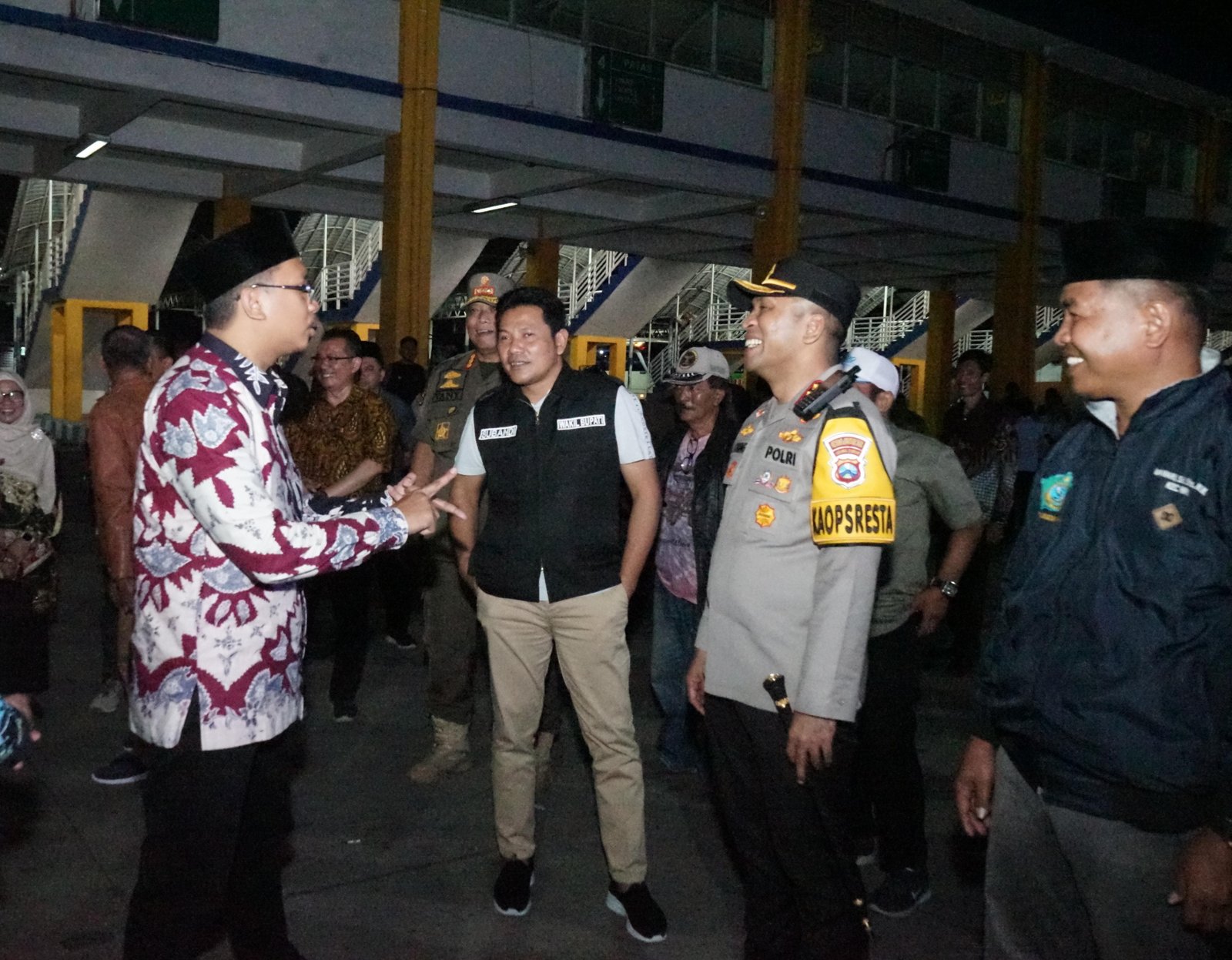 Tiba terminal Bungurasih, Bupati Sidoarjo Ahmad Muhdlor Ali bersama Forkopimda mengecek situasi arus lalu lintas dan aktifitas masyarakat yang nampak memadati terminal antar provinsi itu.