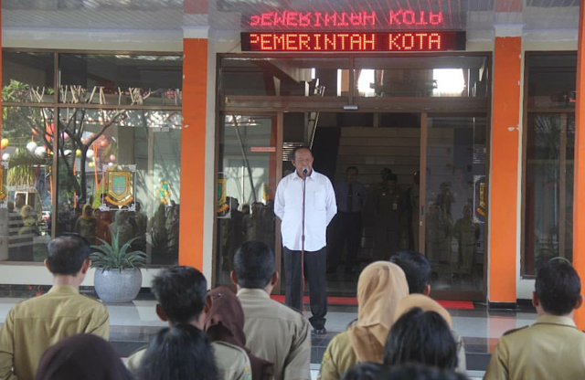 Mengawali amanatnya, Wawali Suyitno menyampaikan rasa prihatin atas masalah hukum yang sedang dihadapi Mas’ud Yunus dan mengajak seluruh karyawan untuk mendoakan, “Mudah-mudahan beliau selalu diberikan kesehatan dan kesabaran dalam menghadapi masalah ini,” pungkasnya.