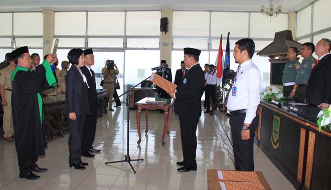 MOJOKERTO – MD : Kepala Badan Narkotika Nasional (BNN) Provinsi Jawa Timur Sukirman melantik dan mengambil sumpah pejabat BNN Kota Mojokerto. Dua pejabat yang dilantik itu adalah Suharsi yang menjabat Kepala BNN Kota Mojokerto.