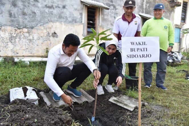SIDOARJO, majalah detektif.com – Program penghijauan dengan penanaman 500 bibit pohon mangga dilakukan di Desa Pabean Kecamatan Sedati. Bibit mangga dari Dinas Lingkungan Hidup dan Kebersihan/DLHK Sidoarjo itu ditanam diberbagai lahan. Selain ditanam dilahan TKD Desa Pabean, juga ditanam di halaman rumah warga yang membutuhkan. Sabtu pagi, (21/1/2023), secara simbolis penanaman pohon dilakukan Wakil Bupati Sidoarjo H. Subandi SH di TKD Desa Pabean yang terletak di Dusun Pabean. Penanaman juga dilakukan Forkopimka Sedati diantaranya camat, Kapolsek serta Danramil dan Kades Pabean Hj. dr. Sriatun Subandi.