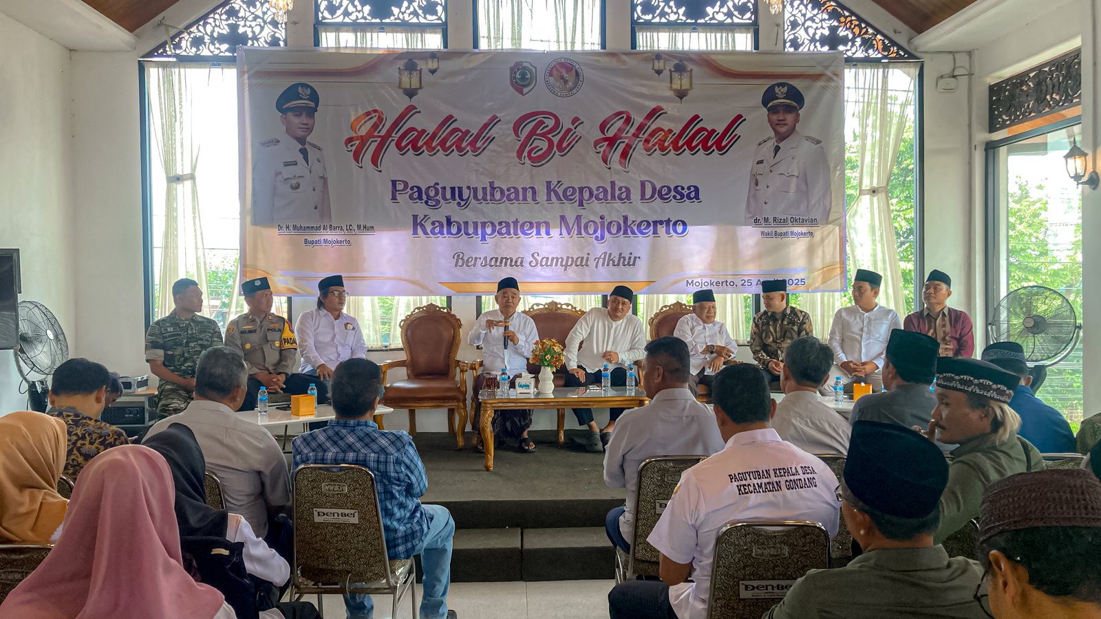 “Pada pukul 15.00 WIB kemarin, saya bersama Gus Barra menemui Kapolda Jatim. Dalam pertemuan itu saya sampaikan bahwa di Mojokerto ada PKD, namun juga ada organisasi kepala desa lain. Kapolda menyampaikan secara tegas bahwa ia mendukung penuh PKD Mojokerto, begitu pula Kapolres Mojokerto. Mereka tidak mendukung organisasi lain,” ujar Kiai Asep saat memberikan tausiyah dalam acara Halal Bihalal PKD Mojokerto di Den Bei Café, Kecamatan Pungging, Jumat (25/4/2025).