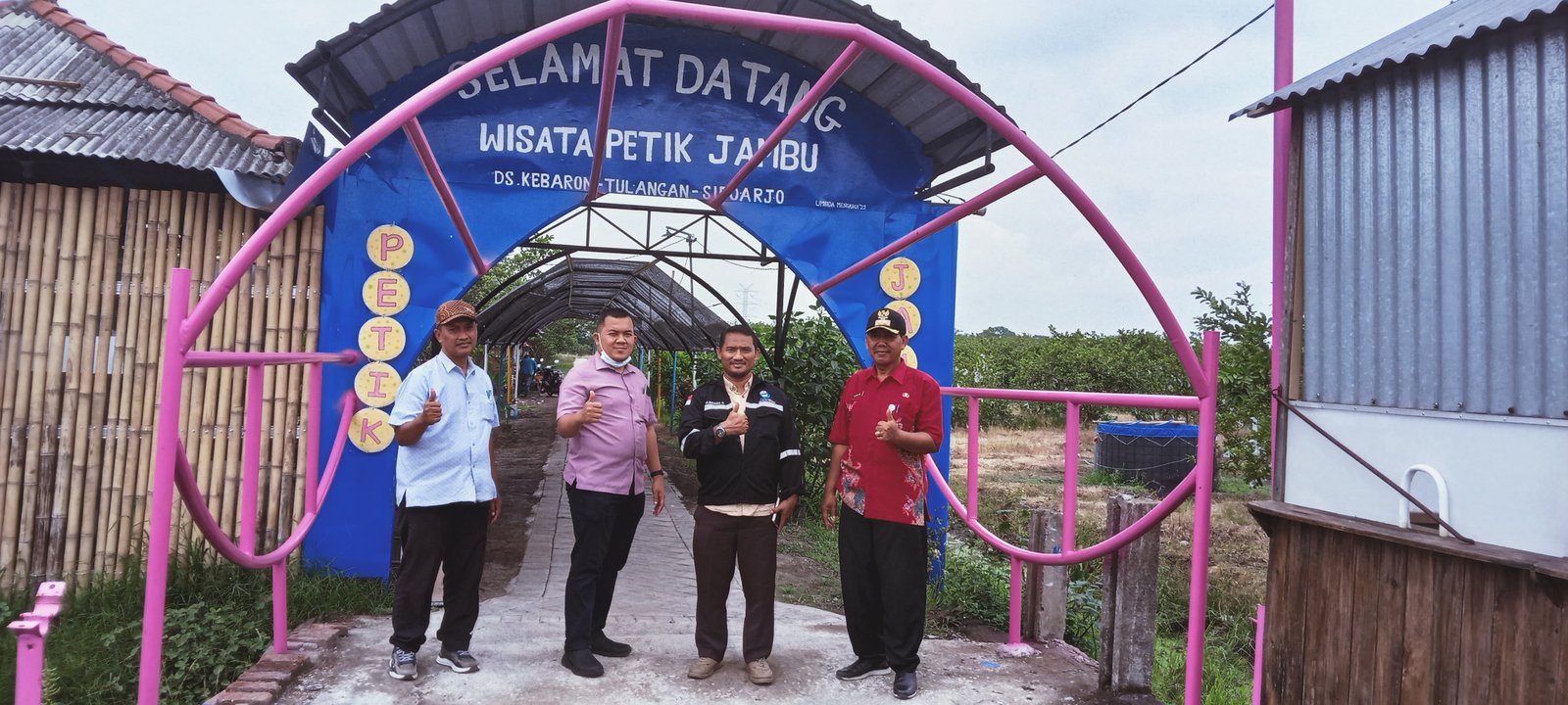 Kepala Pusat Penelitian dan Pengabdian Kepada Masyarakat PPNS, M. Basuki Rahmat, ST., MT., di dampingi oleh Ketua Unit Inovasi dan Inkubator, Danis Maulana, MBA., berkunjung secara langsung di Desa Wisata Kaki Bumi Petik Jambu, Kamis (02/02/2023).