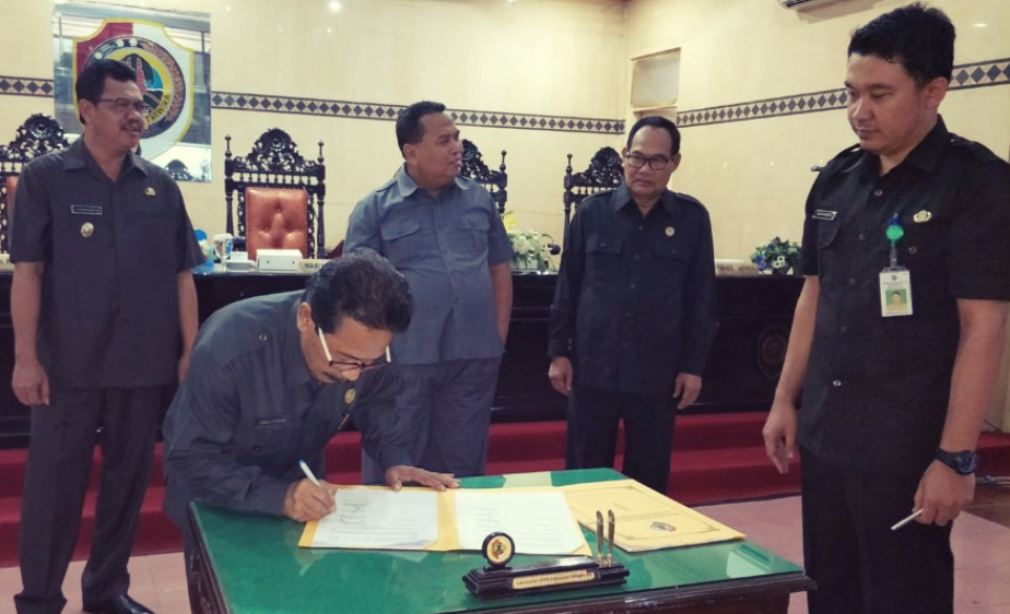 Sebelum acara penandatanganan bersama penetapan dua Raperda digelar, paripurna didahului dengan penyampaian Pendapat akhir semua fraksi, Untuk ditetapkan dari Raperda menjadi Perda Kabupaten Mojokerto.