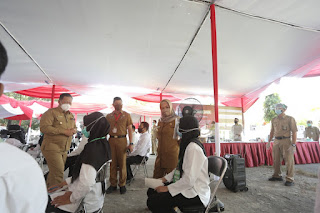 Sebagaimana pelaksanaan protokol kesehatan sebelum memasuki ruang ujian para peserta dipastikan memakai masker dengan benar dan dicek suhu terlebih dahulu. Hasil SKB akan diumumkan pada bulan Oktober mendatang yang dilanjutkan dengan penetapan NIP di bulan November dan penetapan K CPNS pada bulan Desember. (Mar)