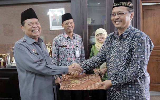 MOJOKERTO – MD : Walikota Mojokerto Mas’ud Yunus dan Ketua Pengurus Wilayah Lembaga Pendidikan Ma’arif Nahdlatul Ulama Jawa Timur Abdul Haris, menandatangani nota kesepahaman (MoU) program pengembangan Kampung Bahasa.