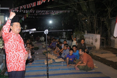 MOJOKERTO – MD : Walikota Mojokerto Mas’ud Yunus blusukan ke sejumlah kampung yang tengah menggelar tasyakuran menyambut kemerdekaan Republik Indonesia ke 70, Minggu (16/8/2015) malam. Orang nomor wahid di kota dengan dua kecamatan ini mengaku sengaja turun lapangan untuk mengetahui secara langsung warganya yang tengah ‘kenduri tujuhbelasan’ Walikota yang mengenakan kemeja khas Kota Mojokerto bermotif ‘batik rengkik’ini mengawali blusukan di beberapa kampung di wilayah Kecamatan Prajurit Kulon dan menutup ‘lawatannya’ di di Balai RW 6 lingkungan Gunung Anyar Kelurahan Kedundung, Kecamatan Magersari. Meski hanya beberapa menit di setiap kampung yang disinggahi namun ia tak sekedar sapa salam.